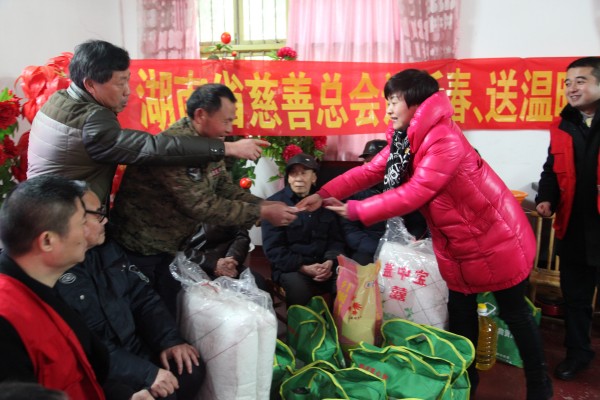 “迎新春·送温暖·献爱心”活动是湖南省慈善总会长期开展的一项公益慈善活动,今年1月在湖南省慈善总会的号召下,国药控股湖南有限公司全体员工积极响应,踊跃捐款,一共募集爱心善款5.3万余元,与湖南省慈善总会共同筹集慰问物资,在汨罗市长乐镇定点发放。国药控股湖南有限公司副总经理杨百胜、工会代表为困难家庭、残疾人士、五保户等现场发放粮油、棉被等物资,为贫困学子提供现金资助,为长乐镇敬老院的孤寡老人发放慰问物资。