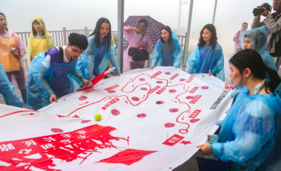 团队到达拓展活动现场时,天空下起了小雨。青年团员们换上队服和雨衣,那跃跃欲试的热情丝毫未受天气的影响。裁判哨声一响,11个小组便高举队旗向山顶进发,将风雨抛在了身后。一个半小时内,既要登山,还要争分夺秒完成任务,雨水夹杂着汗水,浸湿了衣服,这对大家来说无疑是个考验。小组内有人出谋划策、有人前方探路、有人担当摄影师……明确的团队分工、永不言弃的精神和互帮互助的友好氛围,让11个小组顺利完成了“重走长征路、红色传承、党史知识问答、突破封锁区、荆棘排雷”5个裁判任务以及“不忘初心颂党恩”、“永远跟党走 奋进新征程”、“青春建功心向党,百年奋进谱新篇”3个拍摄任务。让我们一起看看精彩的活动现场吧!