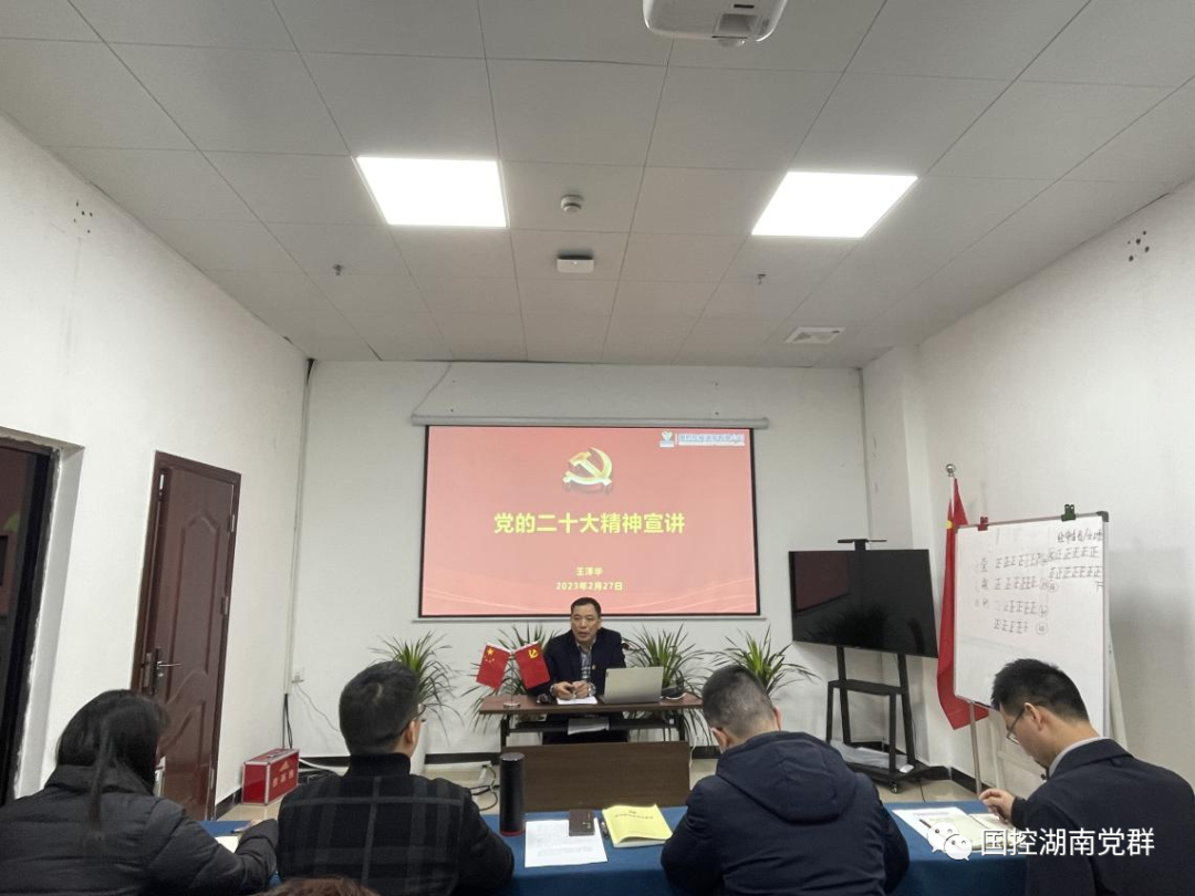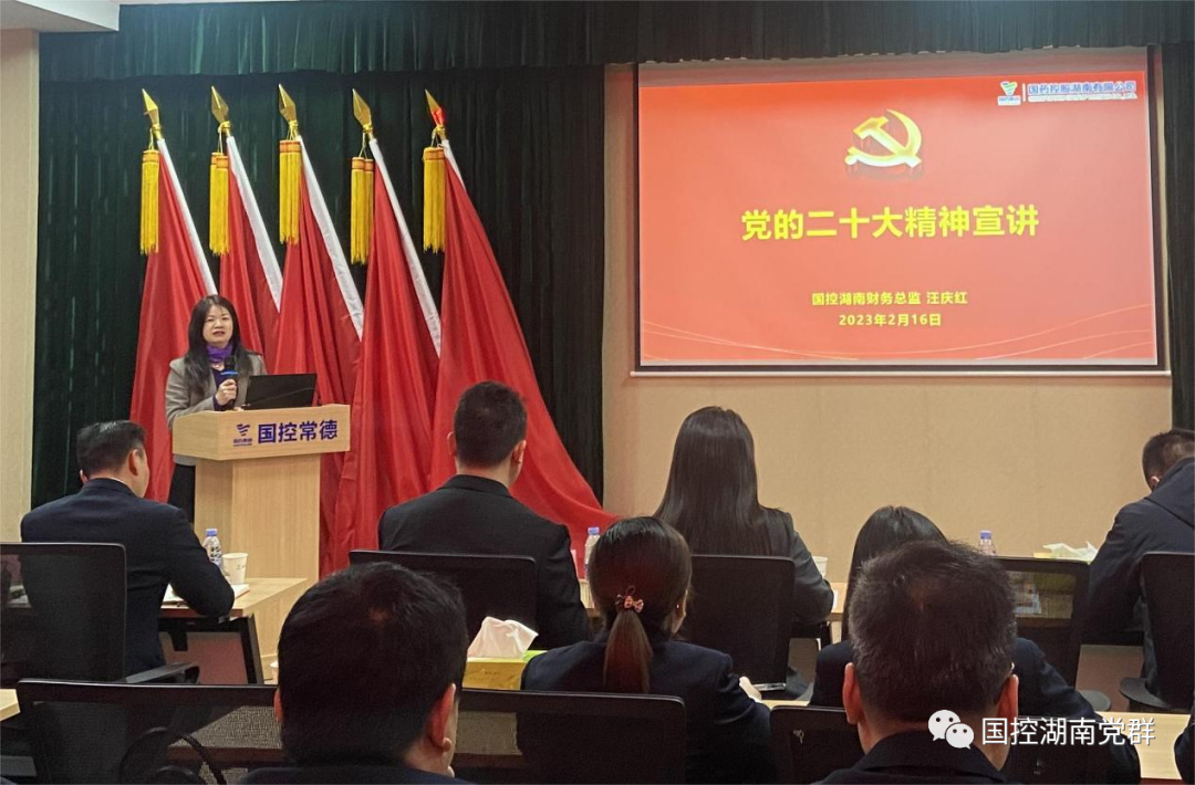 国控湖南党委委员、总经理助理王泽华赴国控郴州、国控永州、国控湘潭宣讲党的二十大精神。王泽华强调,要以党的二十大精神为指引,在新的征程上全面贯彻新发展理念、融入新发展格局,把党的二十大提出的新要求转化为工作思路和行动抓手,团结奋斗、苦干实干,奋进新征程、创造新业绩。