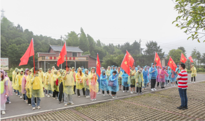 团队到达拓展活动现场时,天空下起了小雨。青年团员们换上队服和雨衣,那跃跃欲试的热情丝毫未受天气的影响。裁判哨声一响,11个小组便高举队旗向山顶进发,将风雨抛在了身后。一个半小时内,既要登山,还要争分夺秒完成任务,雨水夹杂着汗水,浸湿了衣服,这对大家来说无疑是个考验。小组内有人出谋划策、有人前方探路、有人担当摄影师……明确的团队分工、永不言弃的精神和互帮互助的友好氛围,让11个小组顺利完成了“重走长征路、红色传承、党史知识问答、突破封锁区、荆棘排雷”5个裁判任务以及“不忘初心颂党恩”、“永远跟党走 奋进新征程”、“青春建功心向党,百年奋进谱新篇”3个拍摄任务。让我们一起看看精彩的活动现场吧!